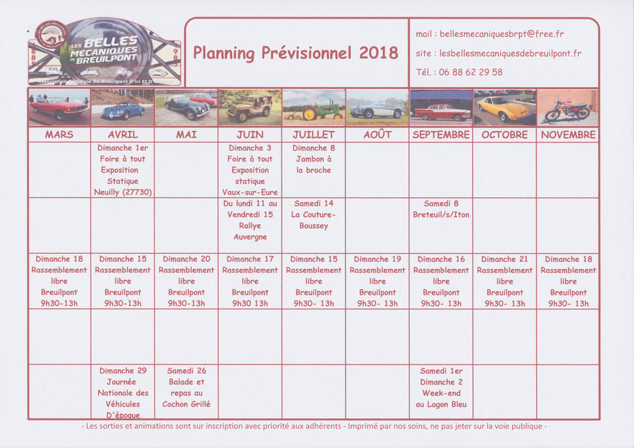 Planning prévisionnel 2018
