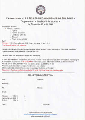 Vous trouverez ci-joint le règlement et le bulletin d'inscription. Attention, le nombre de véhicules est limité à 20.